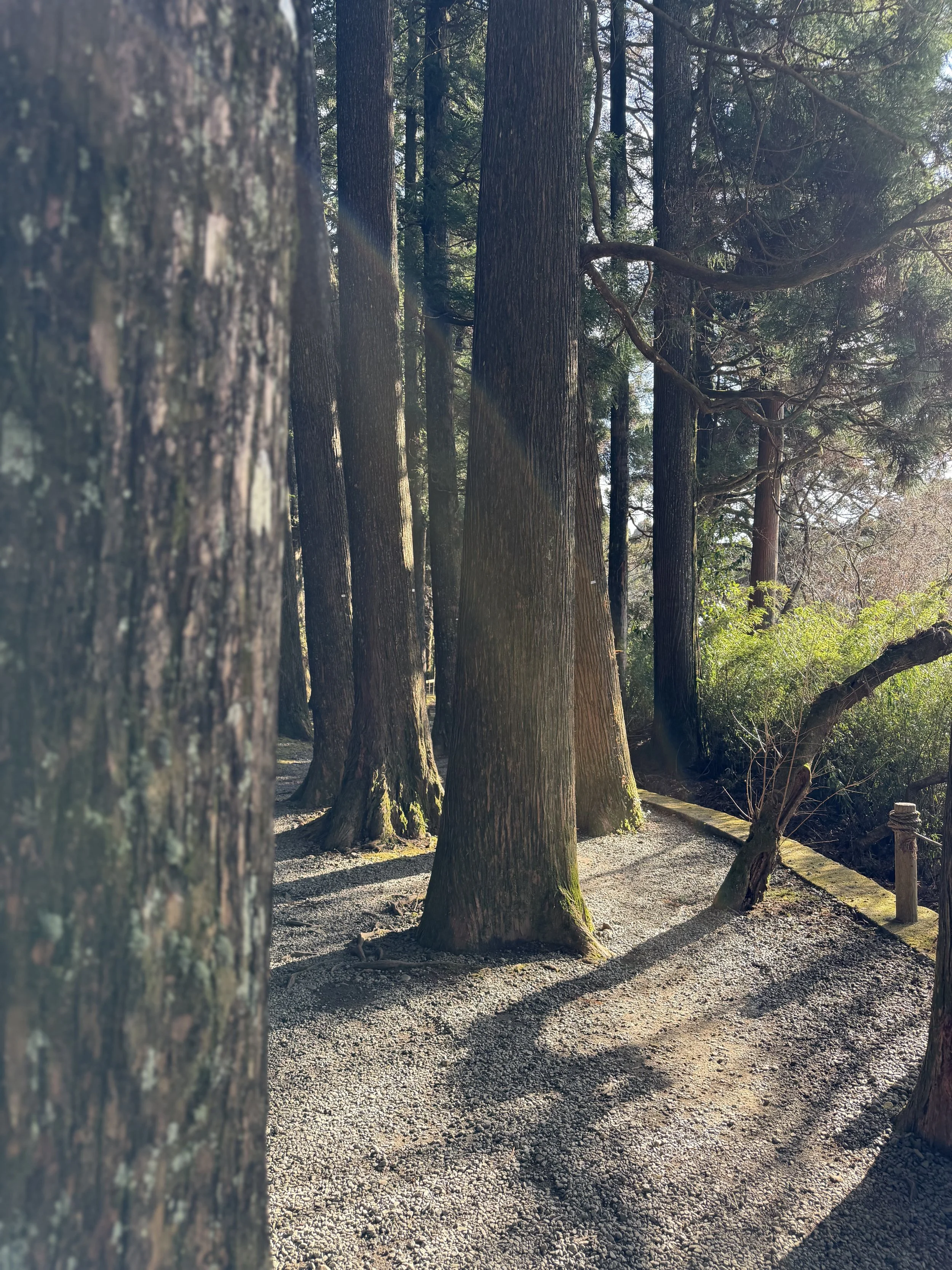 A historic road lined with towering cedar trees once used by travelers journeying between Edo and Kyoto.